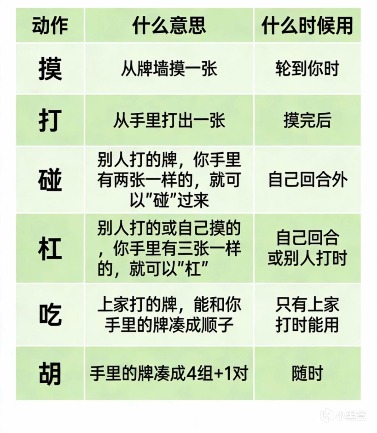 4 .摸、打、碰、槓、喫、胡