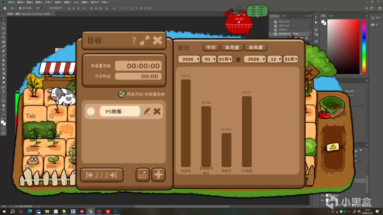 靠鍵鼠的點擊輸入來執行種田和釣魚,同時還能快速開啓番茄鍾和普通計時。