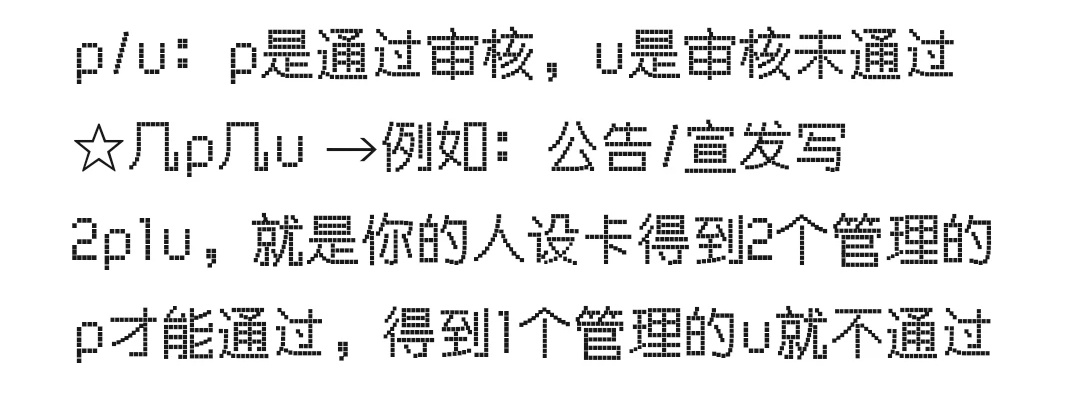 另一種,則是與PF玩法異曲同工的積分制。作爲更偏向於鼓勵創作的機制,在這類企劃中,玩家的作品成爲了一種可置換的資源。所以,一般一些高互動性的探索類企劃,或是PVP、PVE的對抗類企劃,會搭配它一起使用,爲玩家提供換取探索點數或是劇情貨幣的途徑。