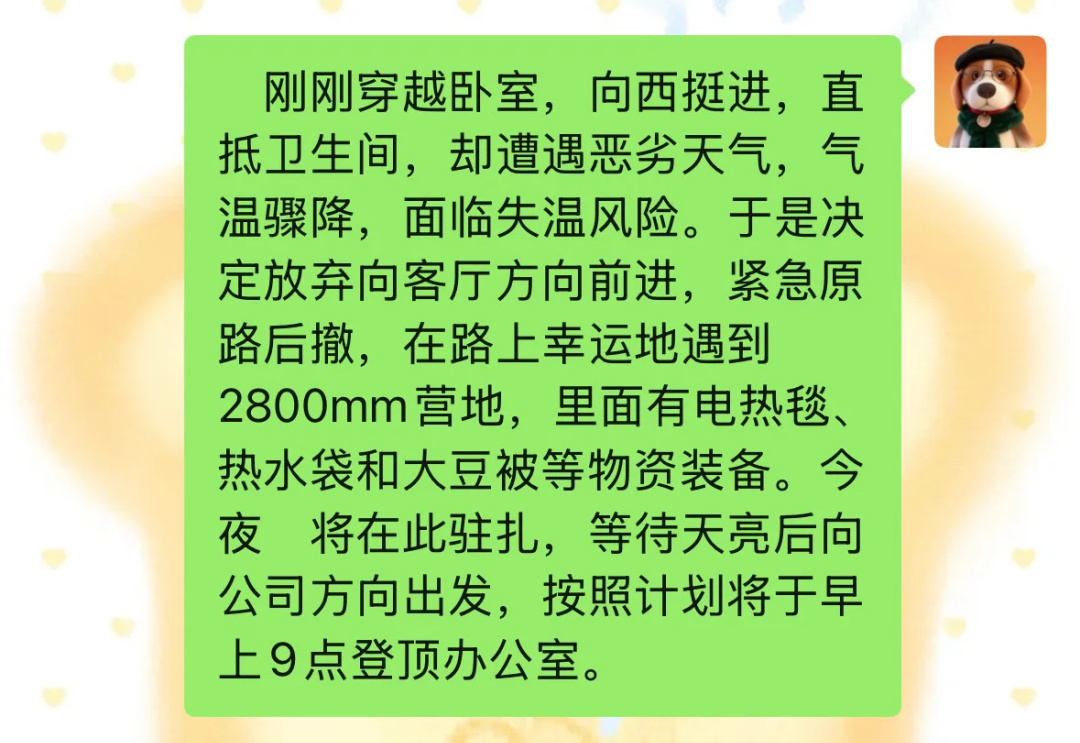 不說那些被困鰲太線,讓12星座決定庇護所的低脂AI視頻;也不說那些在遊戲世界裏模擬穿越鰲太線的整活;單純只是大冬天起個夜,都能被描述成一次驚心動魄的徒步穿越,一不小心就失溫出現幻覺。