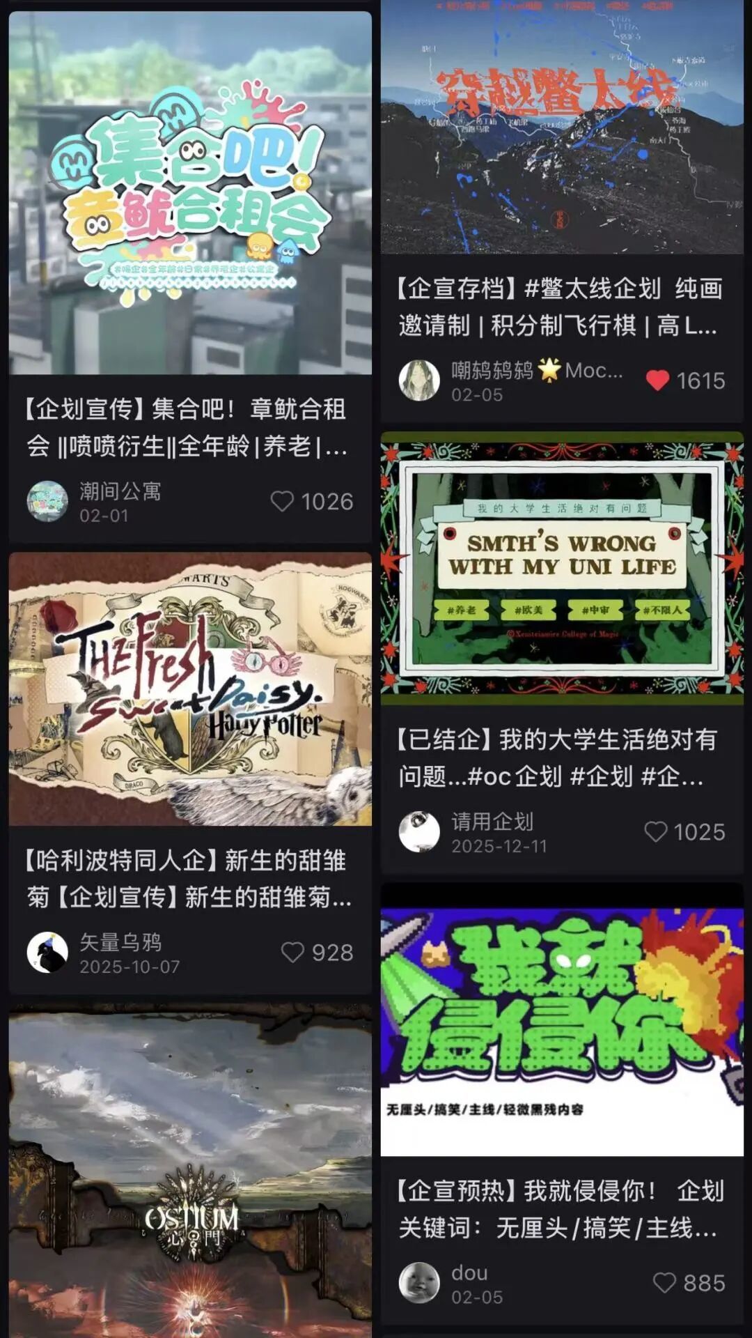 事實上,如今B站、小紅書、微博等社交平臺,早已成爲了OC企劃的主要信息集散地。你可以搜索“OC企劃招募”、“繪圈企劃”等關鍵詞來尋找正在開放報名的項目。