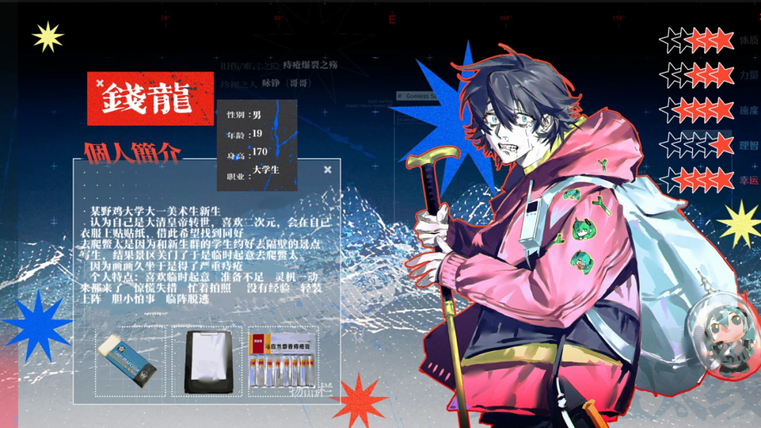 這類跑團企劃,可以隨機組隊、蒐集線索、探索地圖,但也會遇到意外事件需要投骰子判定。所以,玩家往往得在設定階段就提前設置好OC的各屬性點數。如果判定沒有通過,自然也會出現撕卡,即角色死亡的情況。
