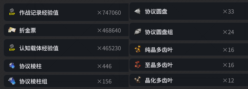 目前角色的通用养成材料如下(80级+技能全9)