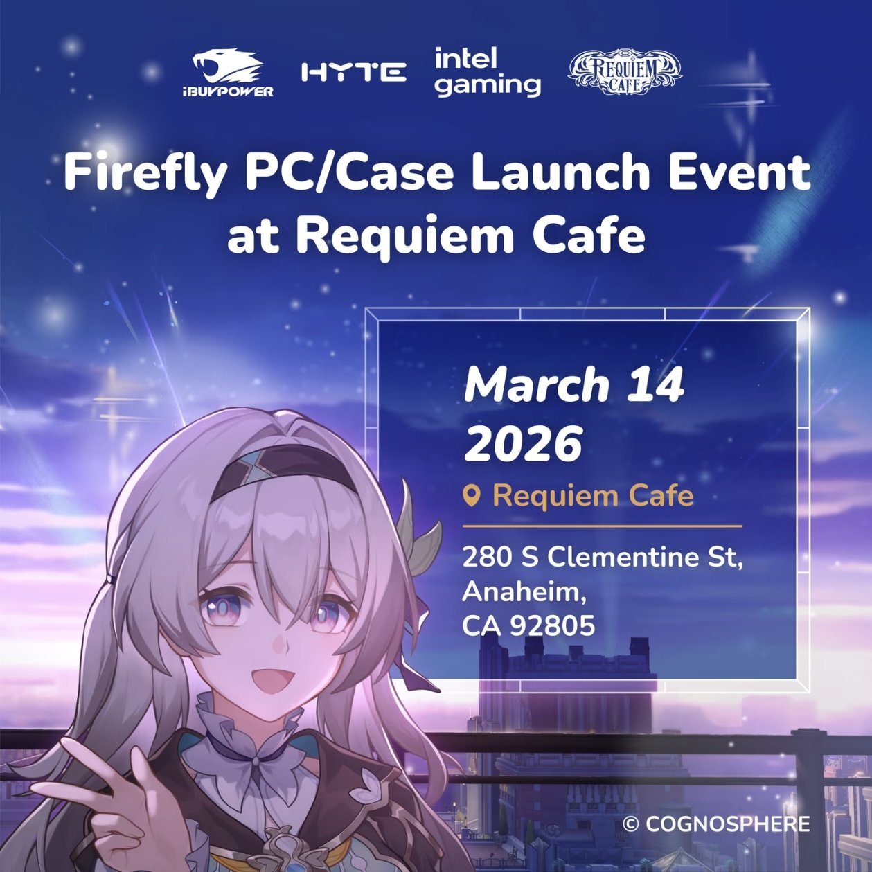 iBUYPOWER、HYTE與Intel Gaming聯合宣佈,將於2026年3月14日在加州阿納海姆Requiem Cafe舉辦《崩壞:星穹鐵道》流螢主題PC/機箱線下發佈會,正式推出流螢聯名硬件系列。