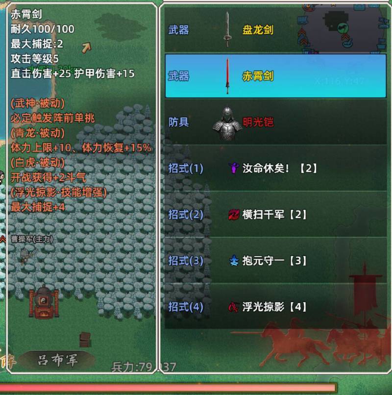 击败军队尤其是有名的三国武将,也会有不同的道具掉落和更高的掉落率,有的武将还会刷新专属任务道具、神装(比如下邳剧本,吕布掉落赤兔)。