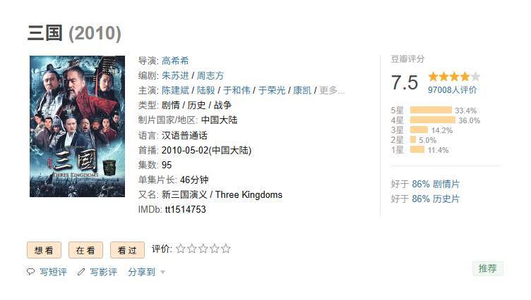 2010年,95集大型历史连续剧《三国》首播,相比94版老《三国》的“纪实片”口碑,10版《三国》因剧情魔改、不符历史、宫斗权谋、时空错乱、台词现代、制作粗糙、滥用配乐等诸多问题,被大量观众批烂批臭,史称“新三”,成为一代人“不可磨灭”的影像记忆。