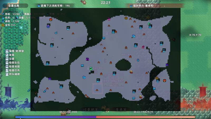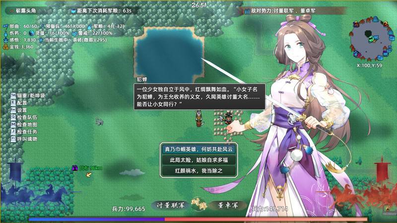 玩家可以在不同的时间线上,选择不同的交战双方势力,比如《董卓之乱》剧本中,你可以选择加入讨董联盟或董卓军势力,另一方阵营的军队和中立敌方会在你靠近时进行追击,以不同难度推进关卡——讨董联盟明显是符合历史发展、天命青睐的那一方,玩家在加入这个阵营后,可以更容易完成BOSS战,达成剧本的正常结局。