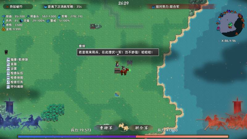 大军团出现,部曲已经补满,军粮只够前往最近的撤离点,或者,前往大军团,要不要背着一身大金大红去打BOSS战?