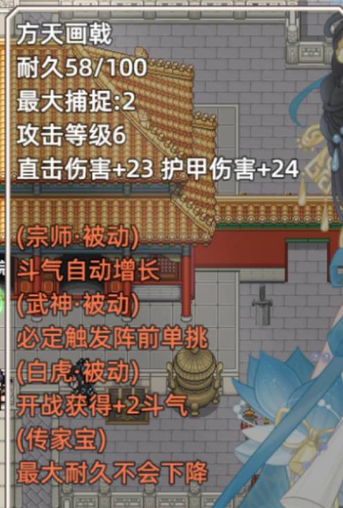 除了前面提到的貂蝉可以入队,目前版本,游戏共有卢奕、董白、吕玲绮、华佗之女、江东二乔、龙女璃吻和一位神秘原创女军师共计10位角色可以纳入后……院,解锁管理随从玩法。