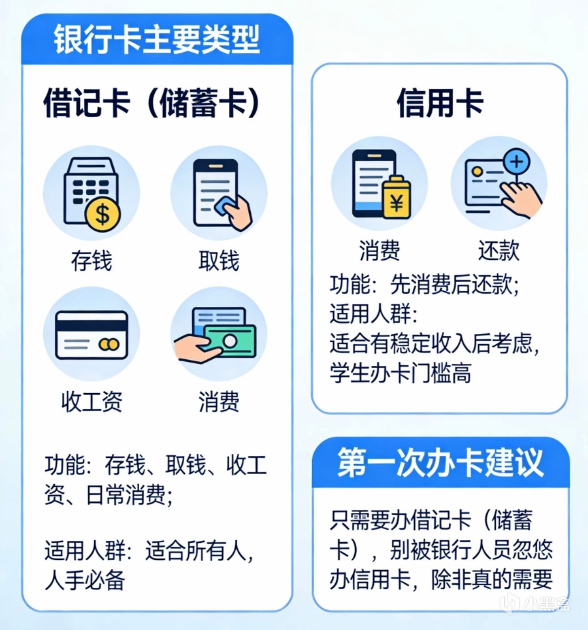 借記卡(儲蓄卡) :存錢、取錢、收工資、日常消費