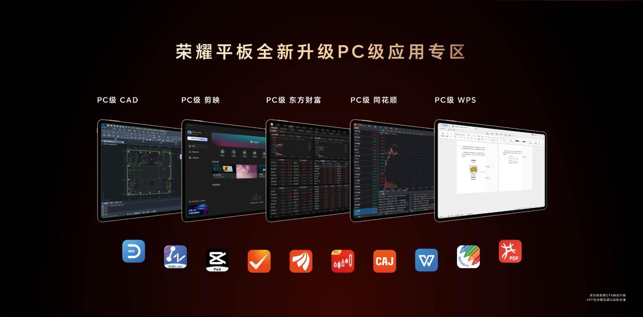 PC级应用支持:我们把完整的PC端专业应用搬上平板,专业办公、设计创作、数据处理, PC上能落地的事,荣耀平板一样能给你无差别的体验;