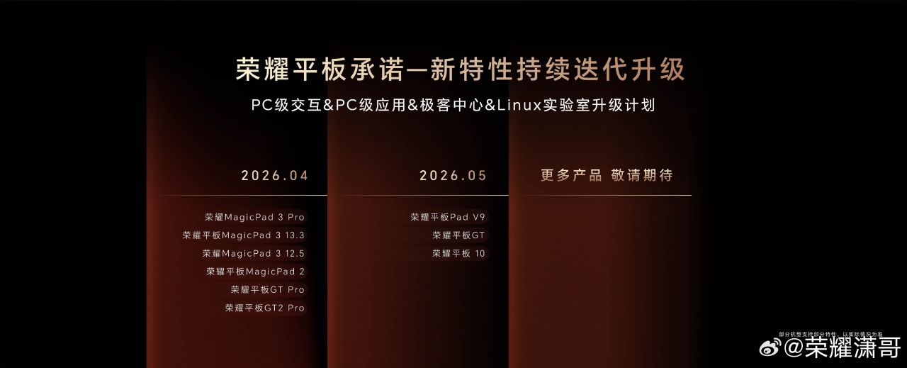 昨日的荣耀 Magic V6 旗舰新品发布会公布了荣耀平板 PC 化升级计划。