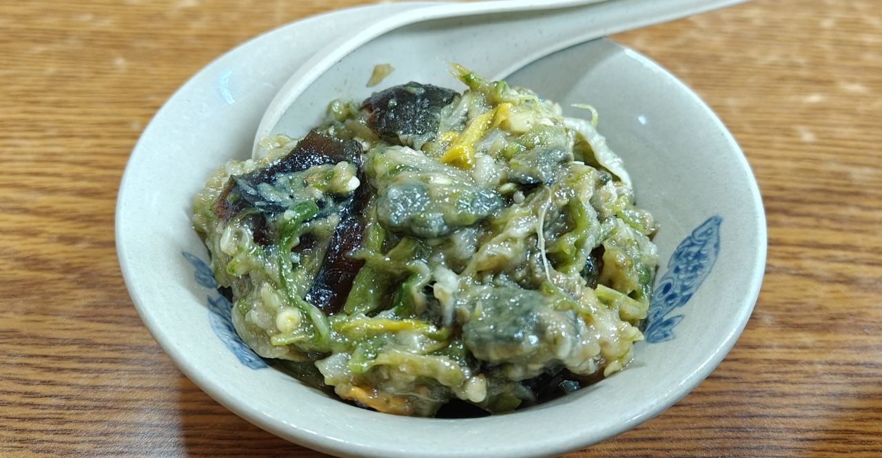 擂辣椒皮蛋确实是小小一份,在上桌前我还有一点担心,因为肉炒肉偏咸已经很下饭了,擂椒皮蛋一般也口味比较重。但尝了之后发现他家的是清淡挂的,辣椒完全不辣,调味也不咸,除了辣椒、皮蛋里面还放了茄子,吃着就是一个蒜味的小凉菜,很清爽,和重口的肉炒肉搭配着正合适。