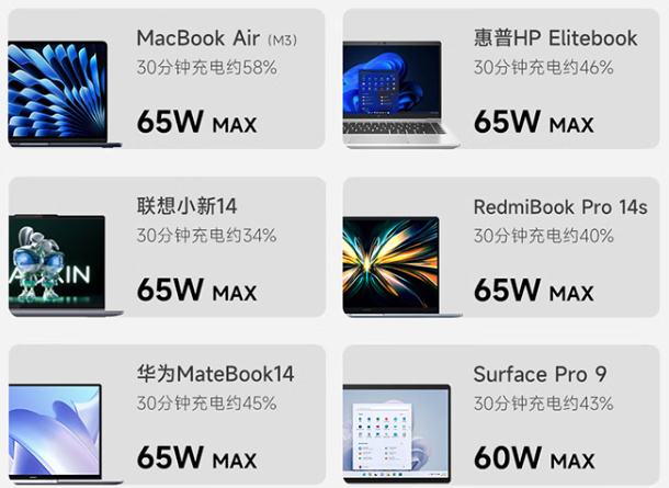 充电协议兼容PD、PPS、QC、小米快充、华为SCP 22.5W、UFCS融合快充等多种协议,电脑手机都覆盖,这点基本没得说。