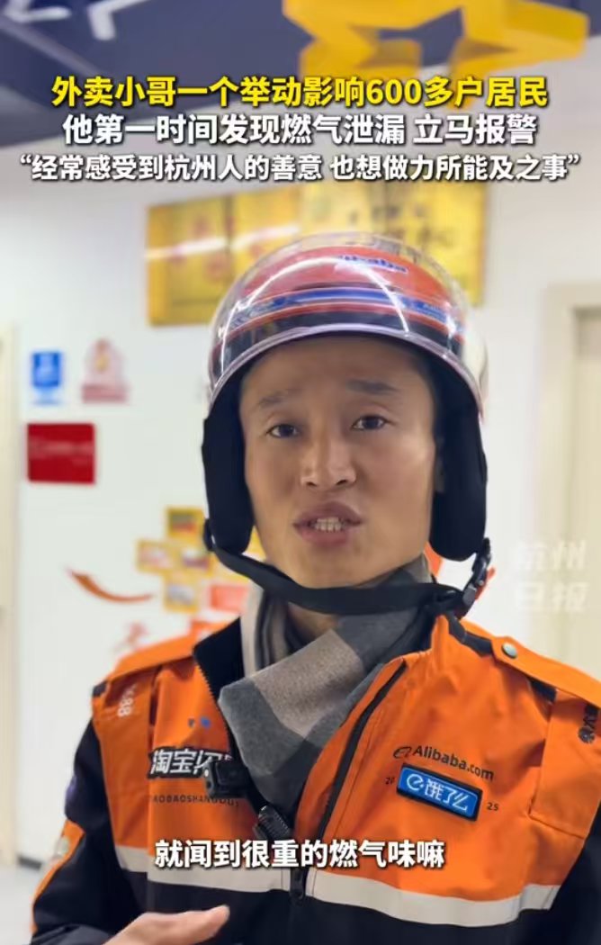 近日,杭州一位外卖小哥在送餐途中,凭借敏锐的警觉和强烈的责任心,及时发现地下燃气管道泄漏,成功避免了一场可能危及600多户居民的安全事故。