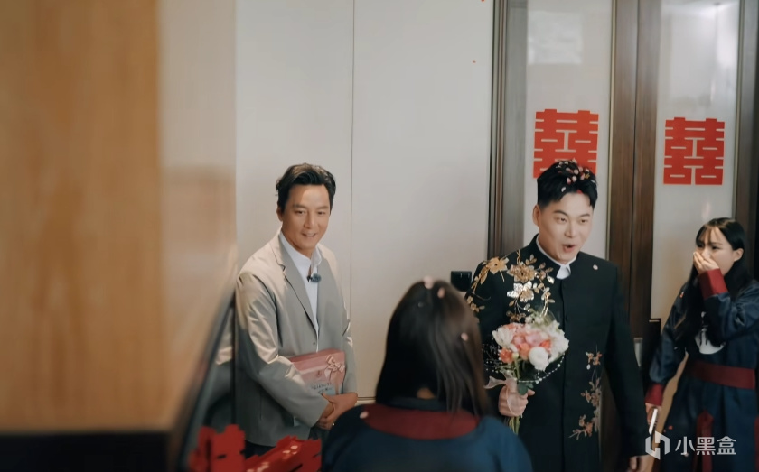 吴彦祖全程没有明星架子,蹲在地上仔细搜寻藏起来的婚鞋,窗帘后、家具缝隙都没放过,认真程度不输新郎本人。