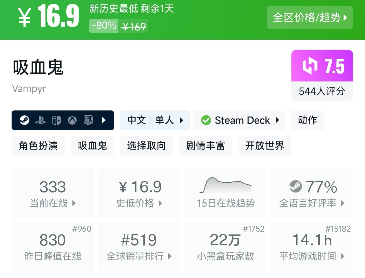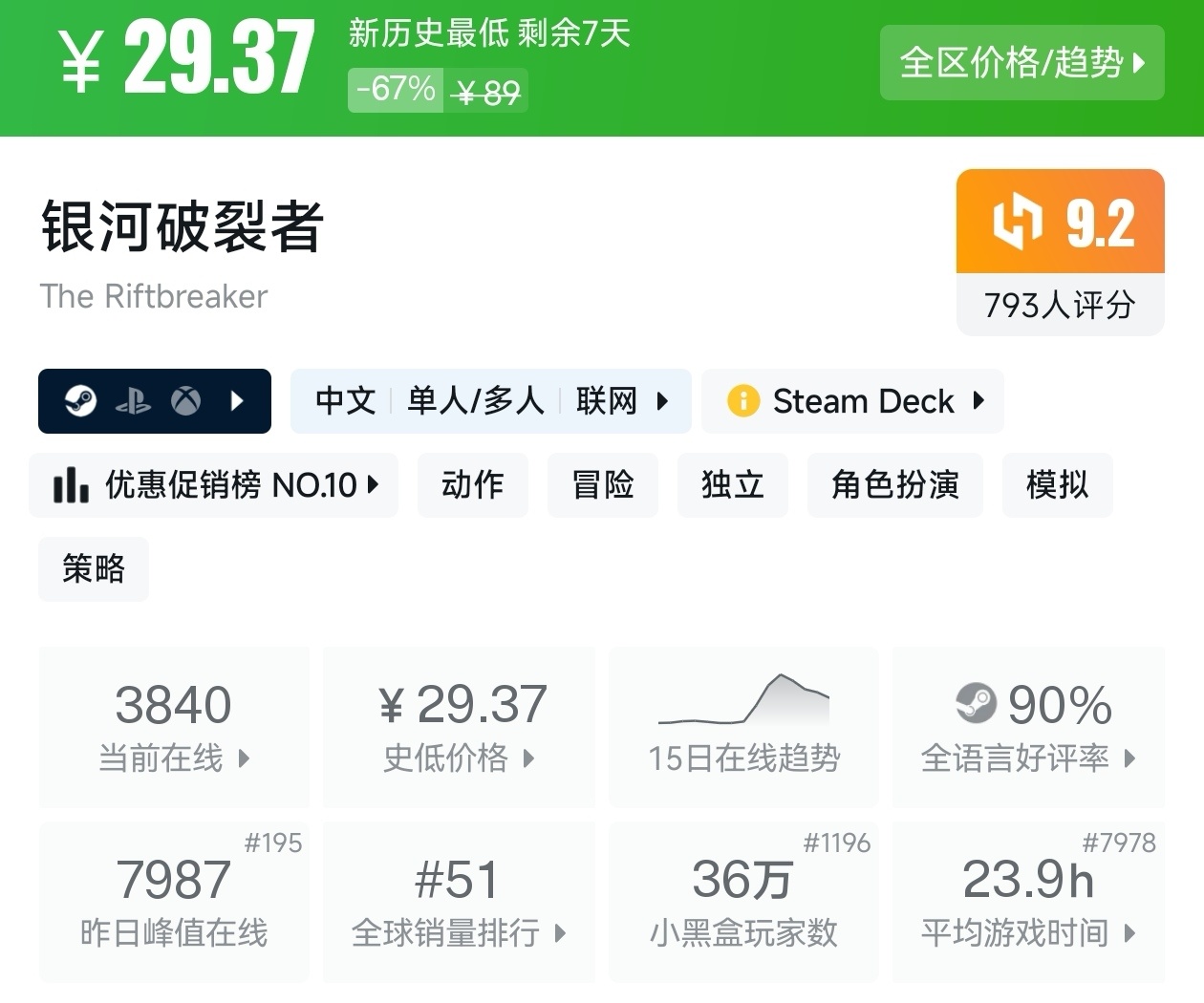 大家好,没错,又是我,你们的老朋友亦然,在最近,Steam又有很多游戏都迎来了折扣,有很多精品游戏都迎来了折扣,其中就有很多新史低游戏,其实新史低的游戏买起来最有安全感,因为在很长一段时间都不会更低,我将为各位进行一个汇总,希望我的汇总,能够帮助各位盒友挑选心仪的游戏。
