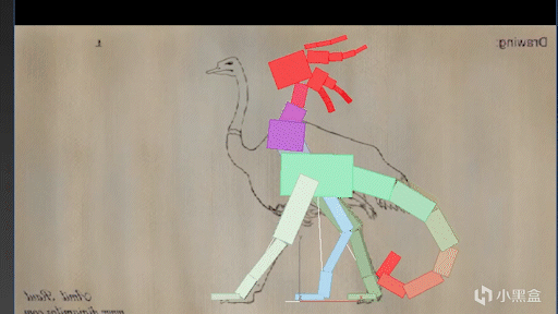 然后我就参考鸵鸟的动作来制作瞿(qú)如的行走动画,但是当我制作完成走路动画的时候,才发现,不对啊,我做的是左右两只脚的动画!这中间还有一只啊!对啊,那中间的那只脚应该怎么动才自然呢?