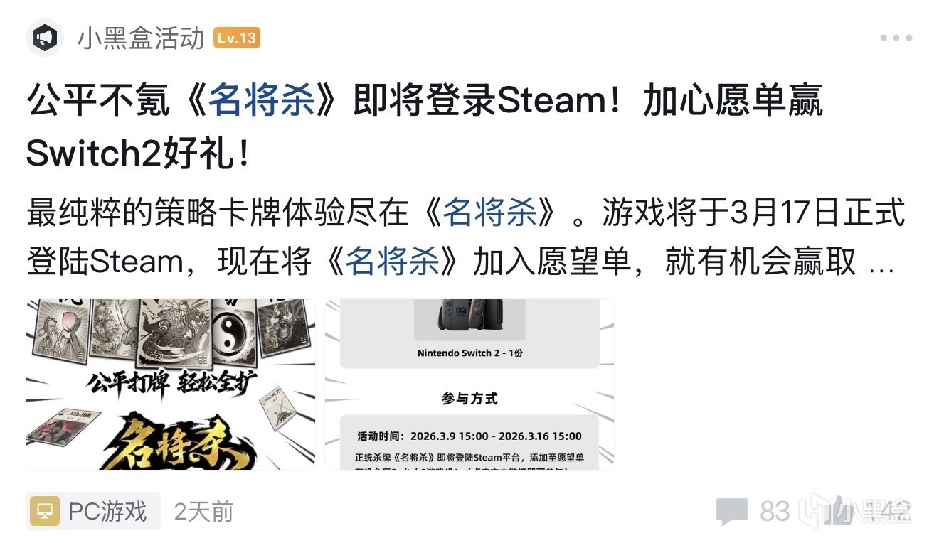 《三國殺》雖然穩坐差評第一,但是玩的人卻不在少數;這次《名將殺》閃亮登場,不僅將在3.17正式上線Steam,甚至還是免費獲取,有點期待如何狙擊了