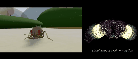 視頻裏,一隻虛擬果蠅在物理引擎裏晃悠。