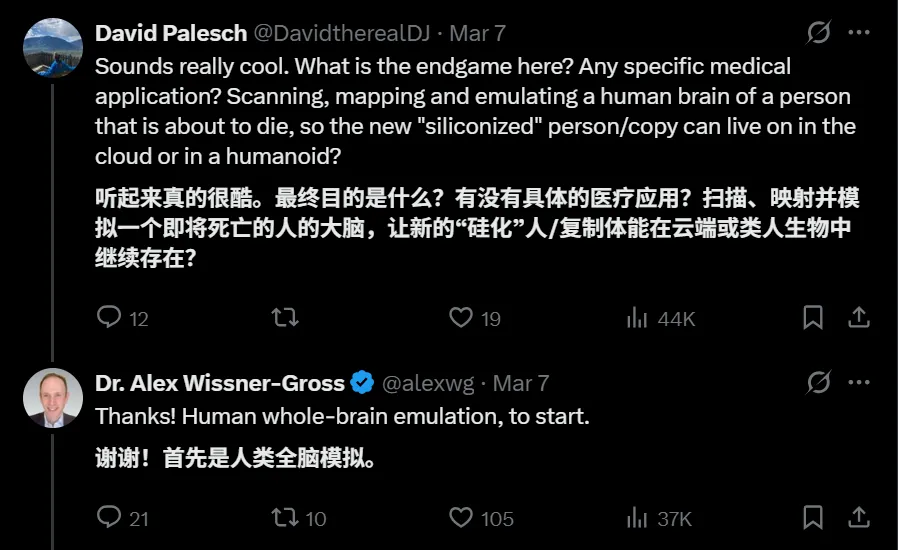 對了,創始人之一 Alexander D. Wissner-Gross 是 MIT 傳奇人物,早年就拿過多個AI獎項。他和團隊的目標很清楚:先果蠅,再老鼠(7000萬神經元,是果蠅的560倍),最終人類大腦。