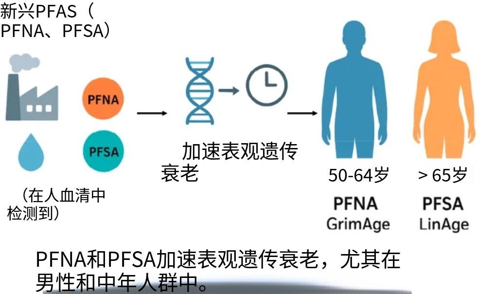 上海交通大學的研究團隊揭示了中年男性表觀遺傳衰老速度加快與 PFNA 和 PFOSA (PFOA 的前體)之間存在顯著聯繫。
