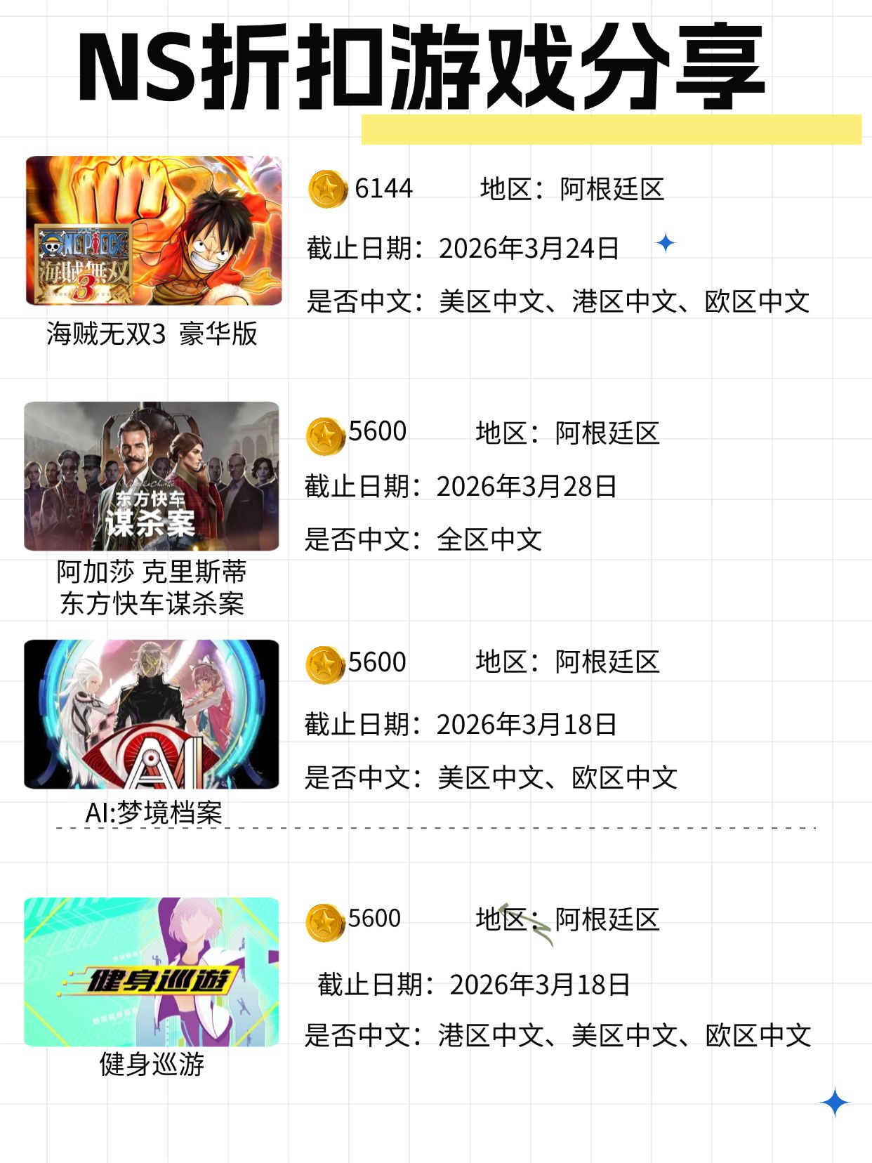 本週阿根廷區的囚禁和地獄邊境雖然有折扣,但是在日服基本上不到10元就能入手,所以沒必要用5600金幣去兌換了,空之軌跡、最終幻想系列都有折扣,但是在入手時要注意是否中文,