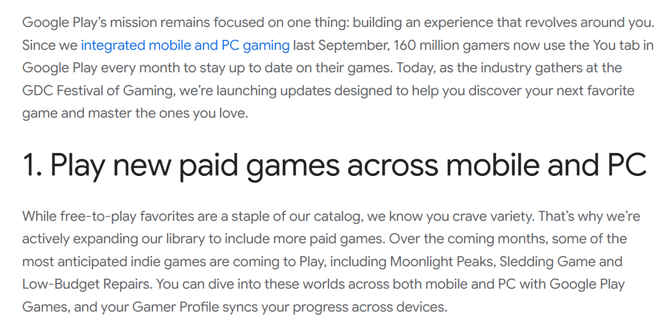 目前,PC版Play Games已结束测试阶段,进入全面运营。其跨移动与PC平台的游戏总数已超过20万款,显示出该服务自推出以来的快速成长。