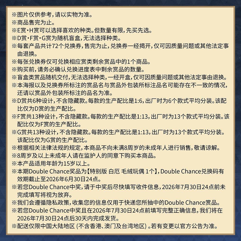 ※若您Double Chance中獎,請於中獎後儘快填寫收件信息,2026年7月30日24點前未