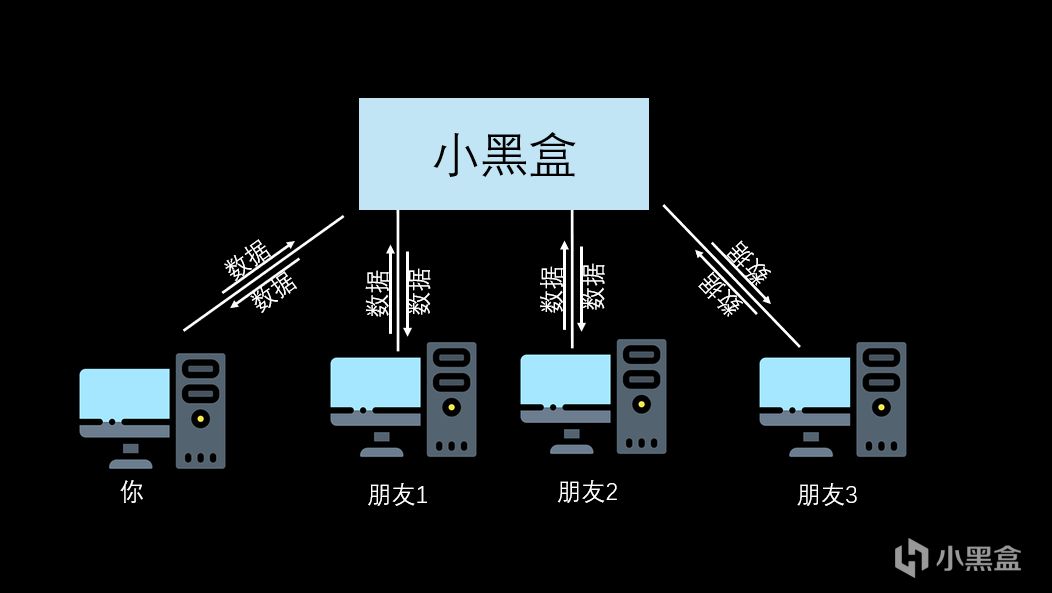 你可以把你和朋友們的電腦想象成兩個人,而中轉服務器(也就是你的服務商)就像是月老,她牽了根紅繩在你們之間,這樣你們就通過那根紅繩連接在一起。