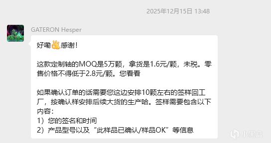 这里首先我们找的是佳达隆代工的原因,有着更好的品控效果,其次来说,这款轴的轴芯模具是我们自己的独家的,也就是我们自己的,所以有这更高的开模成本,所以我们进价就很贵,佳达隆给我们的进价是1.6元一颗,加上包装费用,快递费用,媒体送测费用,综合成本下来大概2元一颗了,我们首发售价2,2元一颗说实话真的我们没赚钱。就赚了一个辛苦钱。日常价格2.7,我们的利润一颗只有7毛,一盒70颗的利润在50块钱。也就是各位的一顿疯狂星期四的价格。这还是在没有售后的前提下。