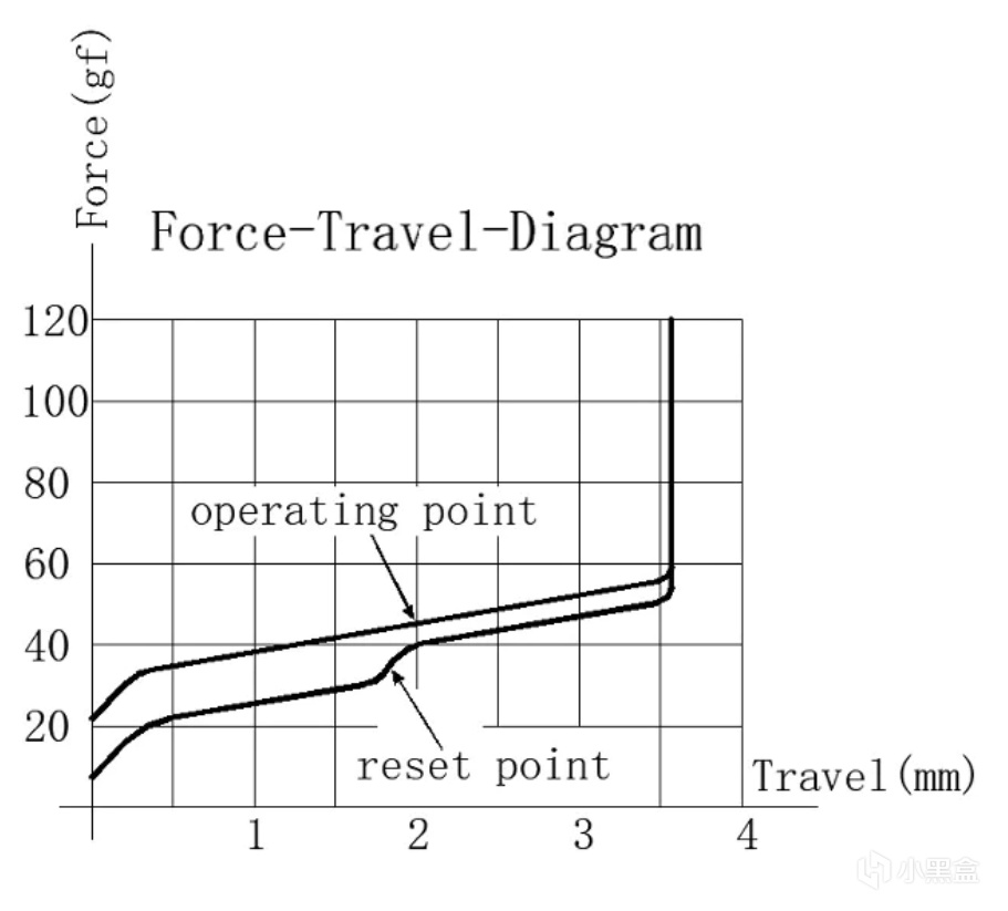 这款轴体的采用一个2.0mm触发,3.7mm触底(正常红轴 2.0触发,4.0触底)属于一款提前触底的轴体。