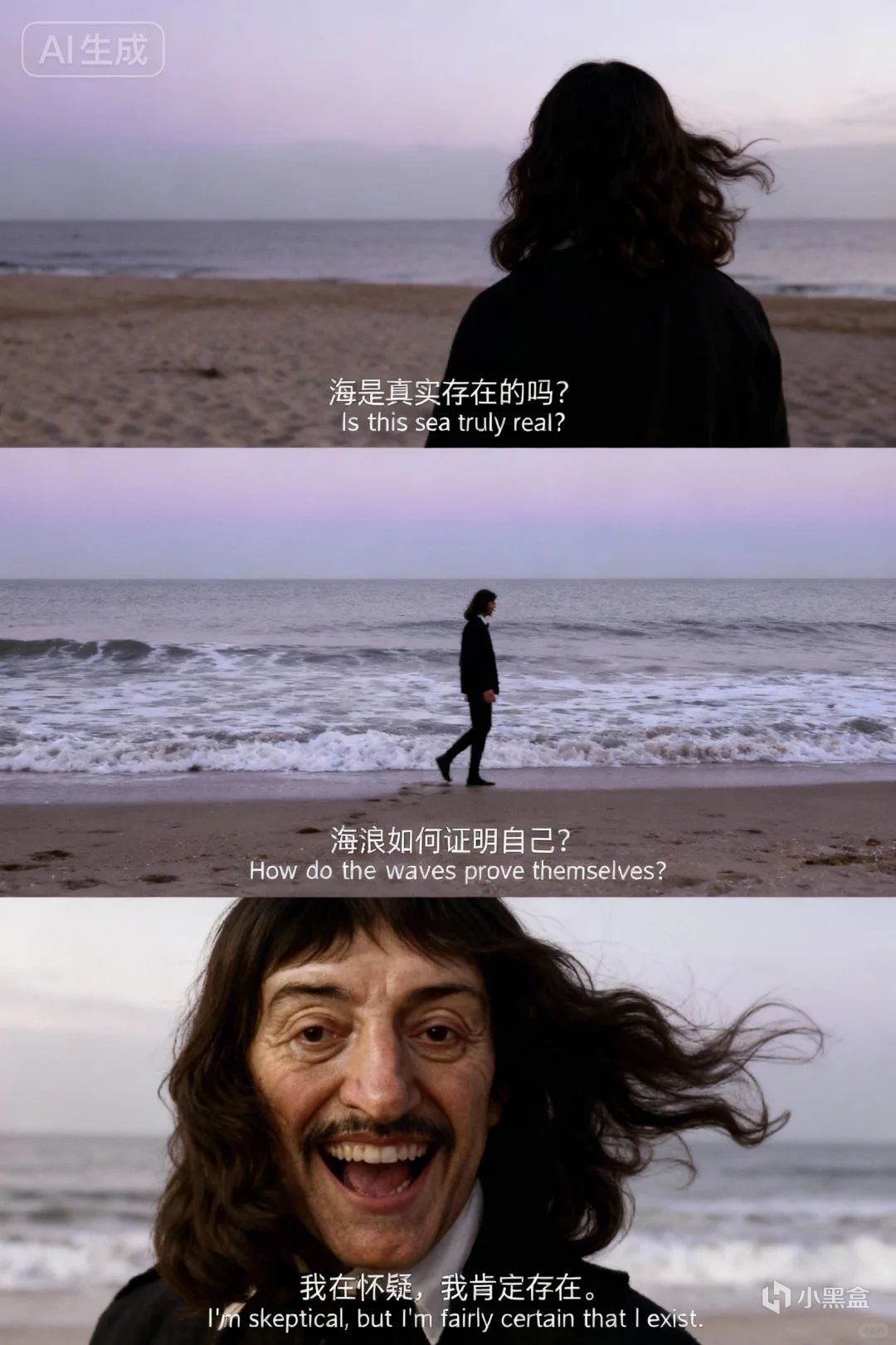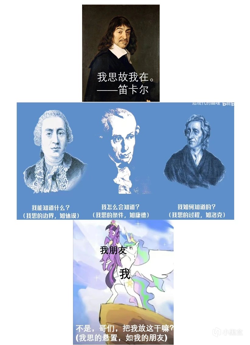 最后他发现, 我在怀疑 这件事本身,是绝对不能怀疑的——怀疑就是思考,既然我在思考,那就说明 我 是存在的。