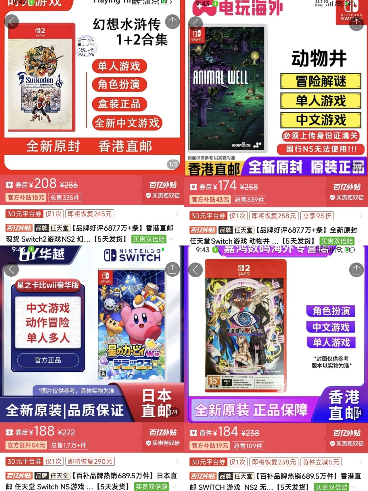【3月13日】Switch卡帶好價(更新中……)