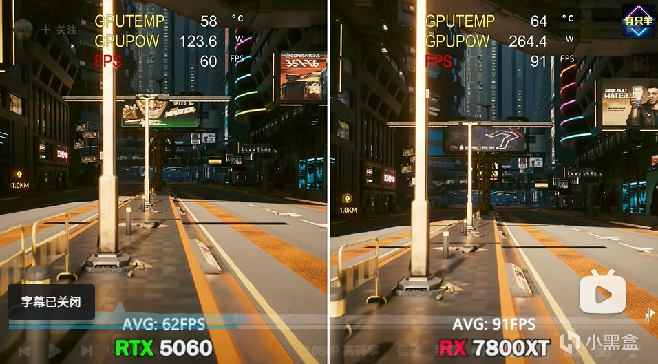 視頻爲9060xt與5060對比測試。
