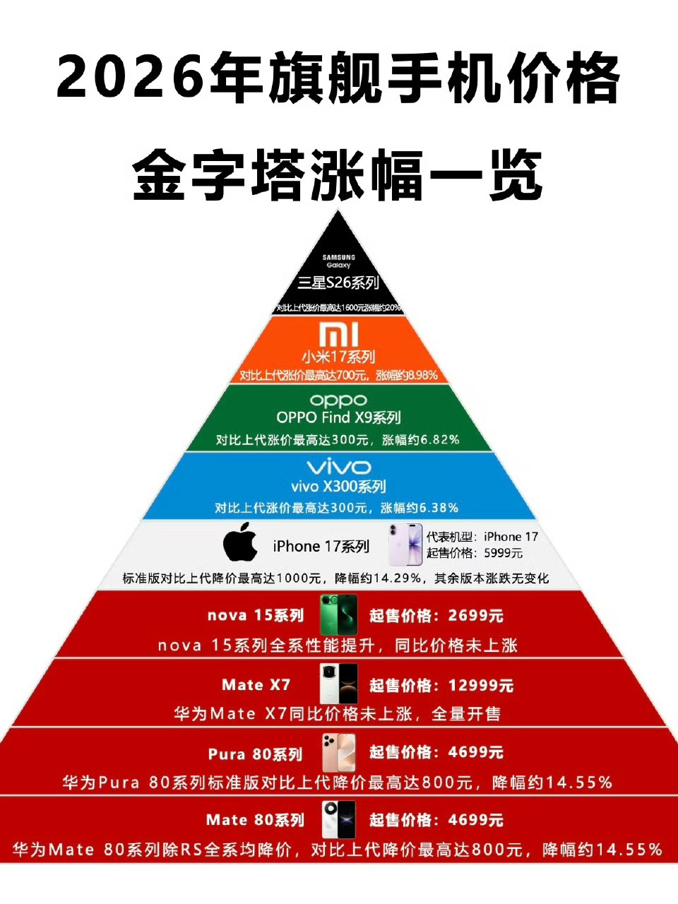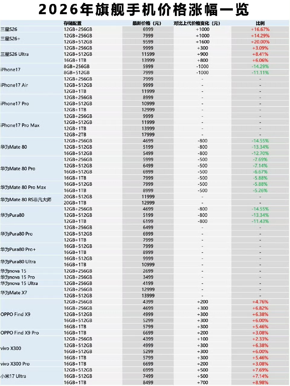 其中摺疊屏等高端機型漲幅最高達2000元,但並非全系普漲,中低端機型普遍上調300-800元。
