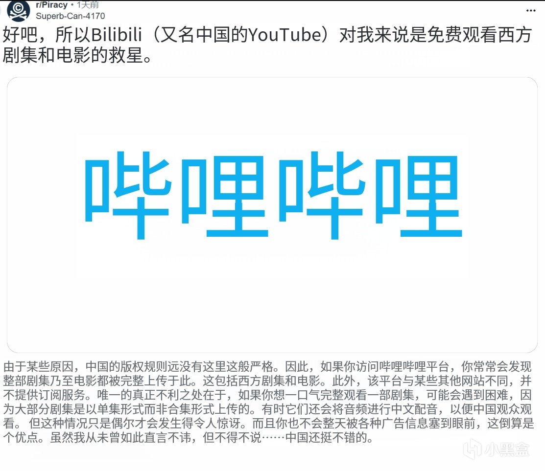 在海外社交平台Reddit上,有网友专门分享自己用B站的体验,直言B站的版权环境对看剧党太友好——不仅能找到完整的剧集、电影,甚至还有不少西方影视剧,关键是完全免费,不用订阅会员。