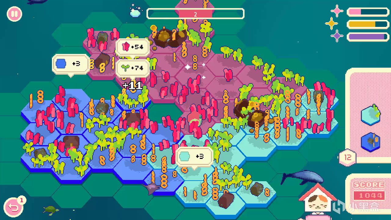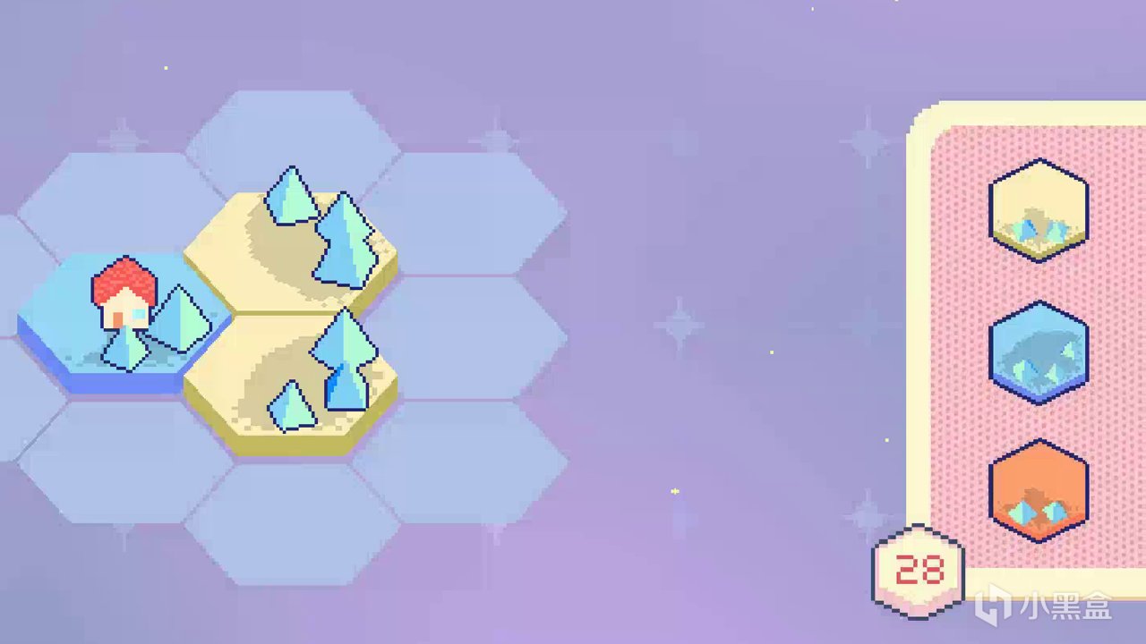 游戏的建造玩法很简单,在六边形网格中放置砖块,向外扩展并满足任务目标即可。