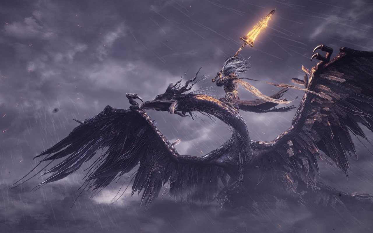 當你抵達古龍之頂,穿越無數古龍的屍骸與遺蹟,最終站在狂風呼嘯的雲端競技場時,你會看到無名王者騎在一頭灰色的巨龍背上,緩緩降下。