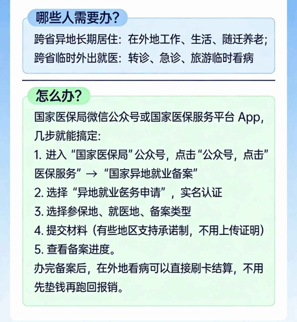 辦完備案後,在外地看病可以直接刷卡結算,不用先墊錢再跑回報銷。