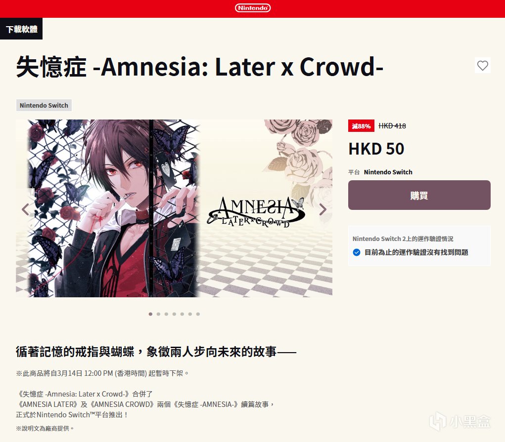 大家好啊,应该很多人都知道了Switch上GSE的众多乙女游戏在港区进行了临时工骨折,原本计划打88折,结果设置成了-88%,每部游戏折后价大概在50HKD(44元)左右