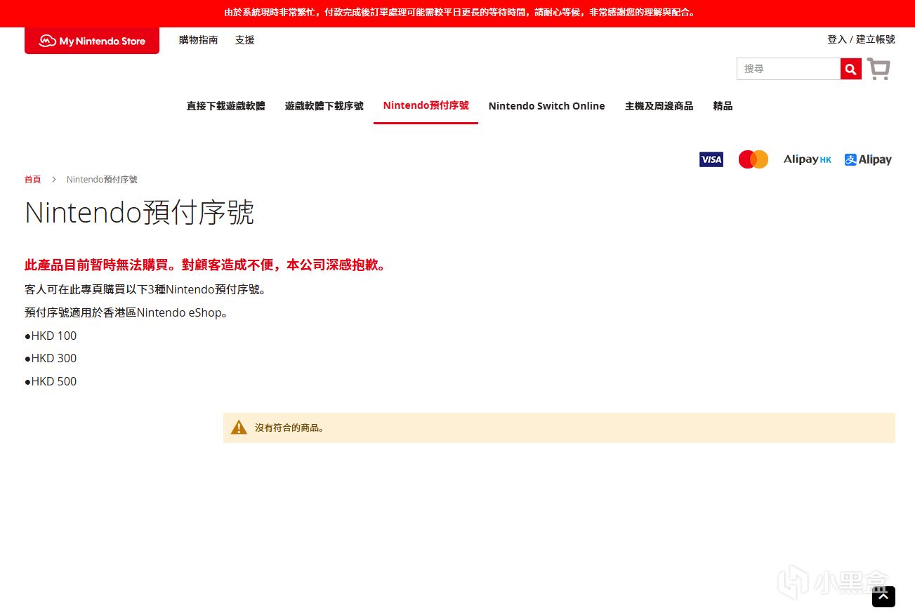 任天堂香港官网充值卡缺货