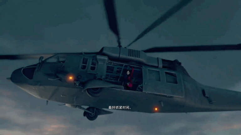 艾达利用逃亡途中威斯克提供的抓钩枪,成功登上了保护伞撤离的直升机。