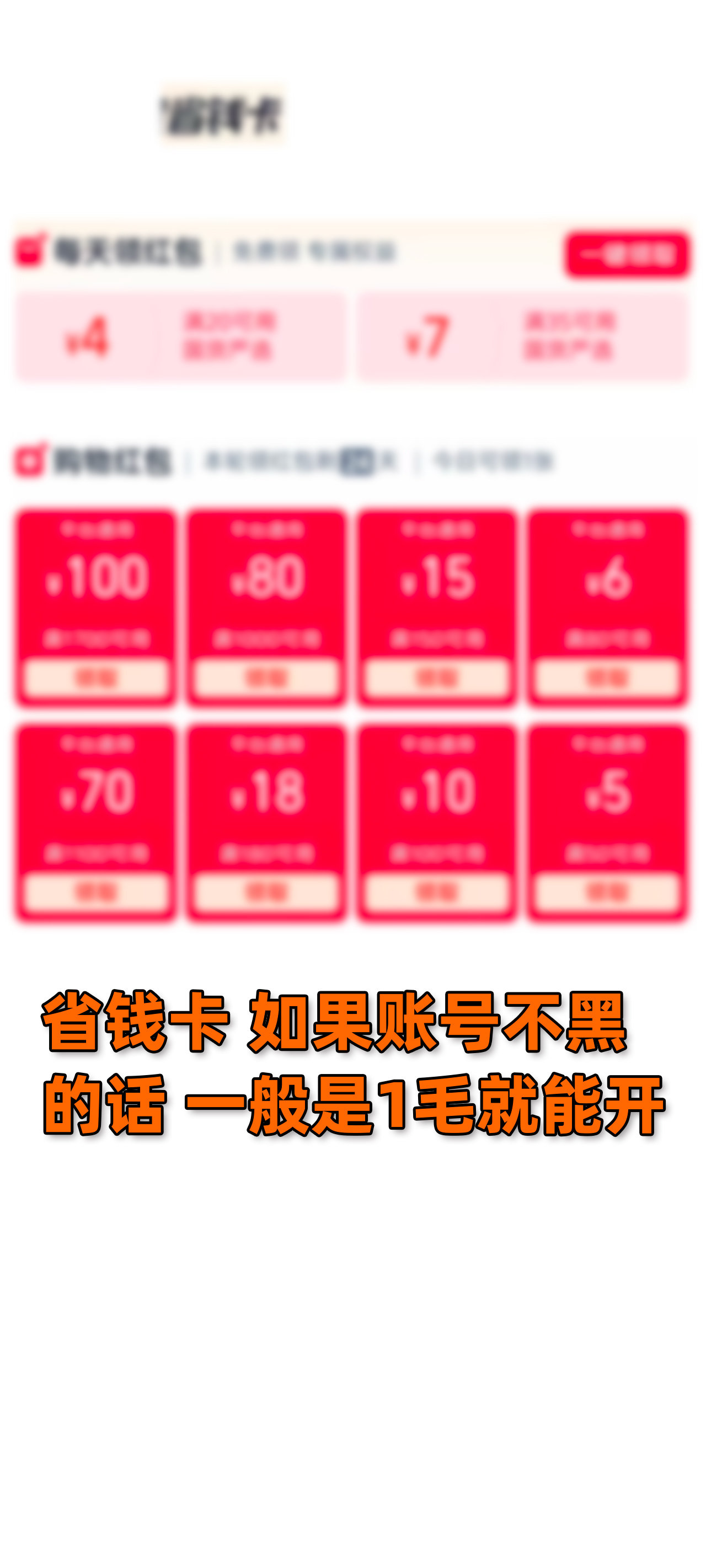 3.🍑省钱卡:一般0.1元就能开,一些满减券