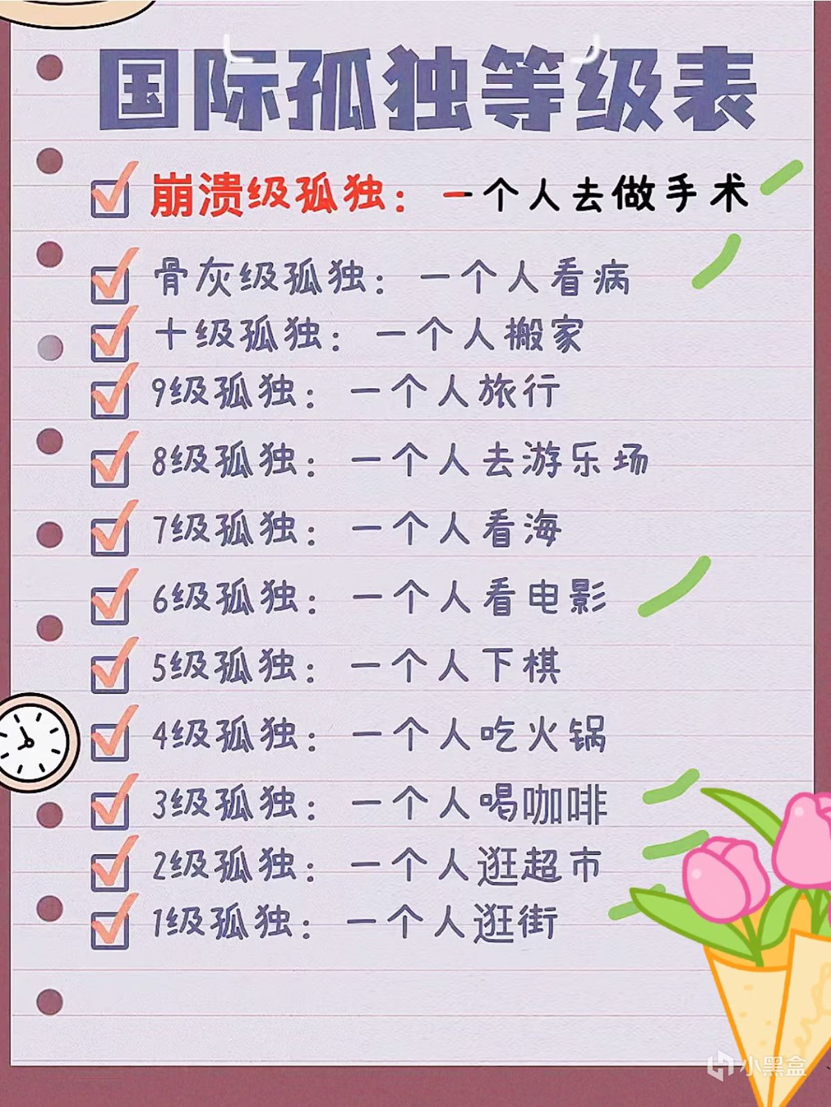 无意间发现一篇帖子推送“测试你达到了孤独几等级”,网上的版本是这样划分的: