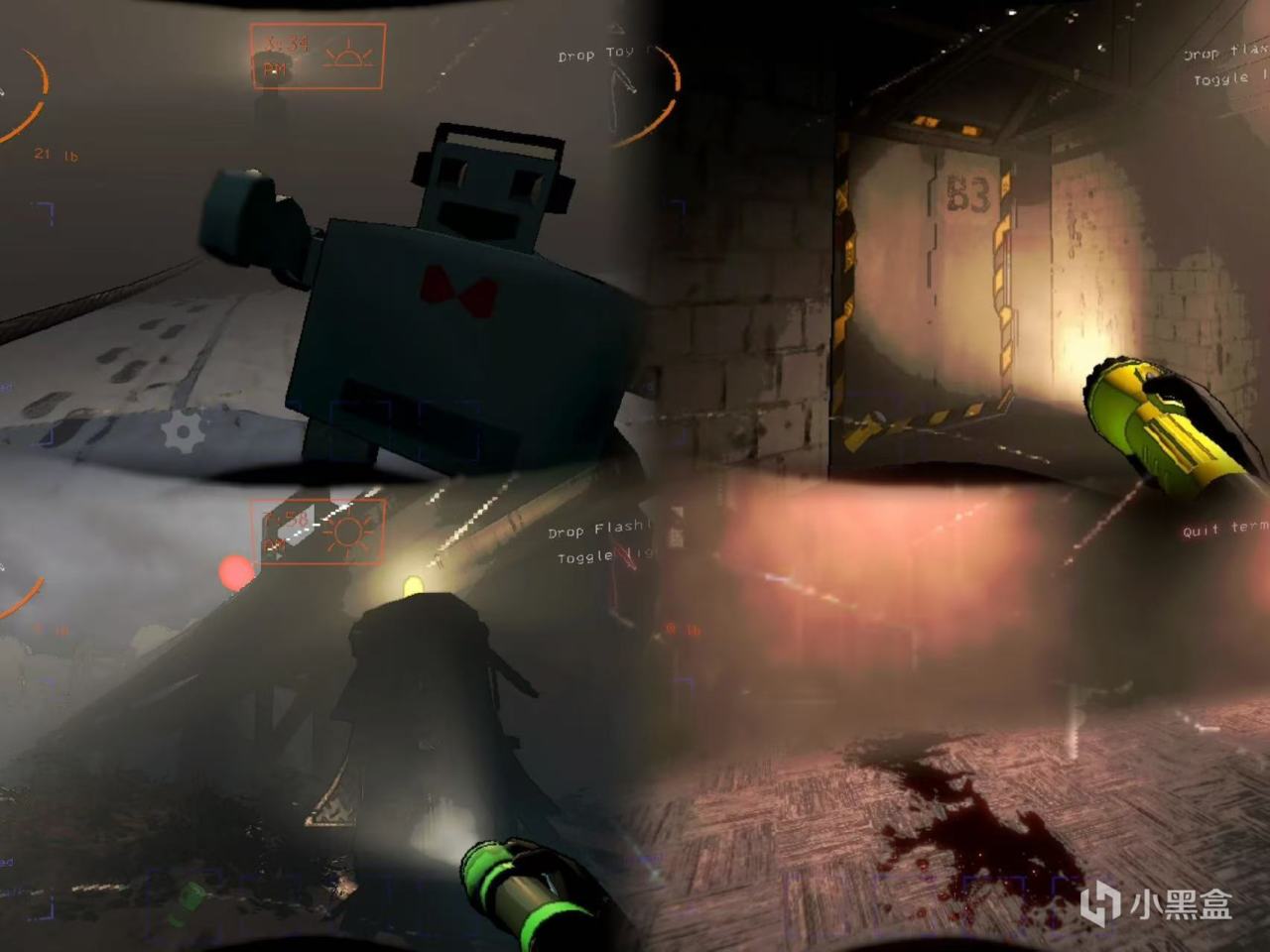 低多边形美术风格,以粗糙的工业废墟场景和昏暗的灯光营造出压抑、阴森的氛围