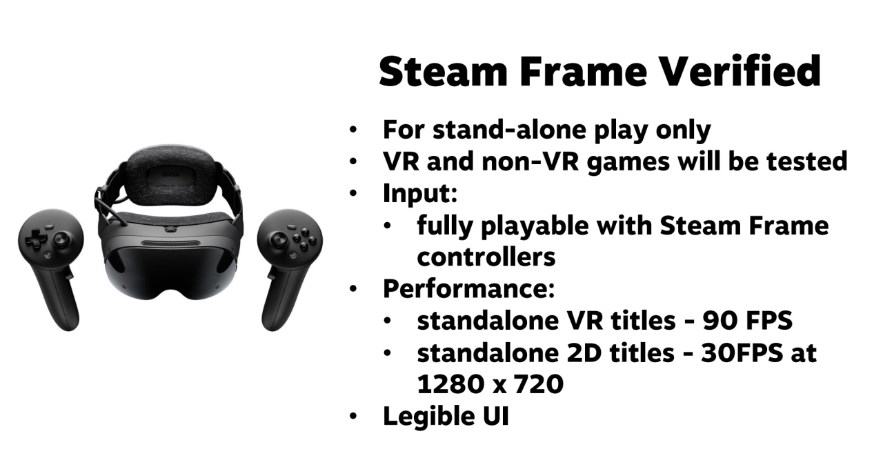 值得注意的是,Valve的另一款設備Steam Frame(一款傳聞中的VR/混合現實頭顯)有着不同的性能要求:VR內容需達到90 FPS,而2D內容則需在720p分辨率下維持30 FPS。