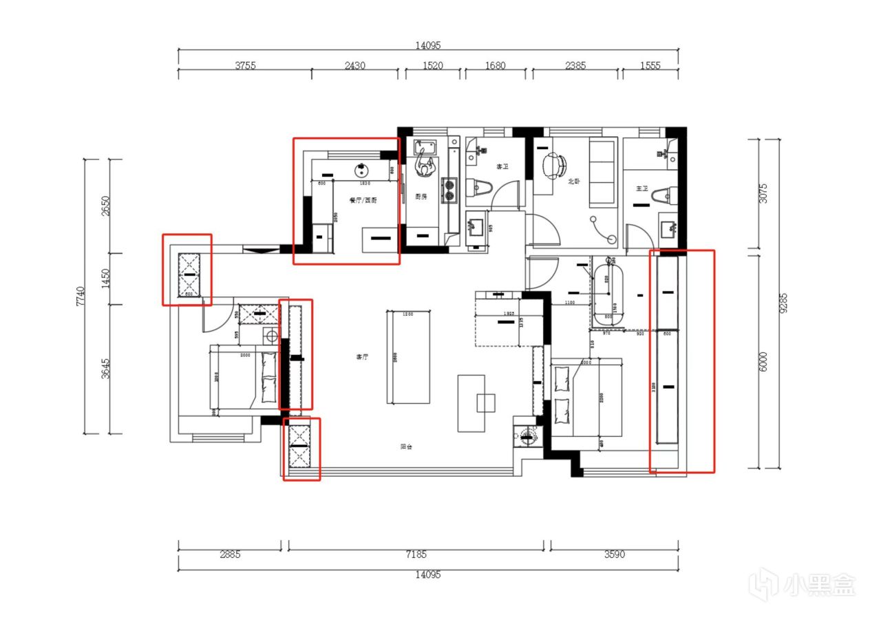 up主是四房改三房,比一开始的方案保守多了,up主超绝装修激进党,可惜出资方不同意,激进的都被驳回了。