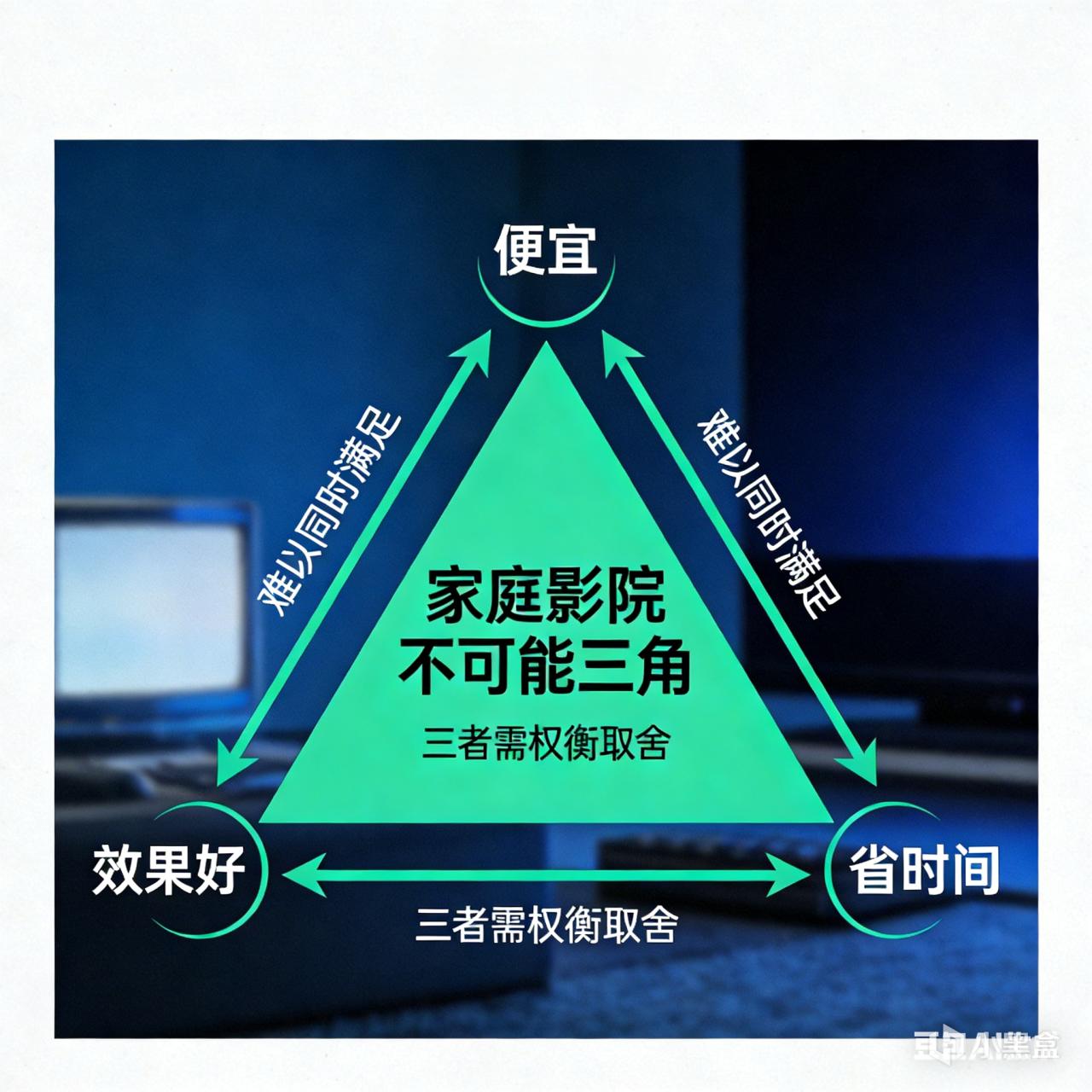 最后引入一下第一个家庭影院之不可能三角,便宜,效果好,省时间。
