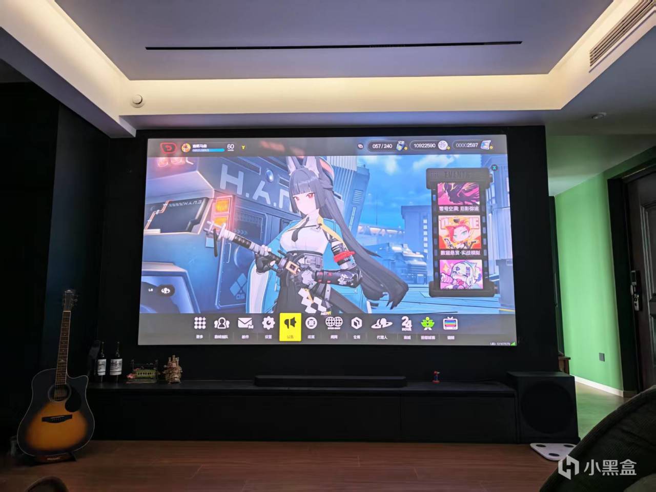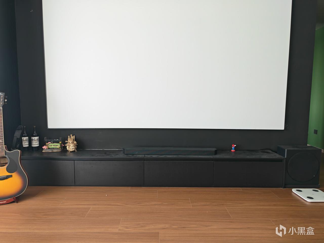 音响因人而异吧,能上尽量还是上,体验提升不小。具体后边会细讲,反正空间上是和投影仪一个房间。